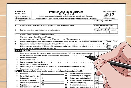 Complete Schedule C. In most cases, you'll use Schedule C to report the profit or loss from your business. There are separate schedules for specialty businesses, such as fishing or farming, which fall under different tax rules. If you're completing your taxes by hand, you can download Schedule C from the IRS website. If you use an online tax preparation service, it will prompt you to complete the form when you identify yourself as a business owner. Schedule C reports income and deductions related solely to your business activity. Any profit is included with all other income you report on Form 1040, and you are personally liable for taxes.