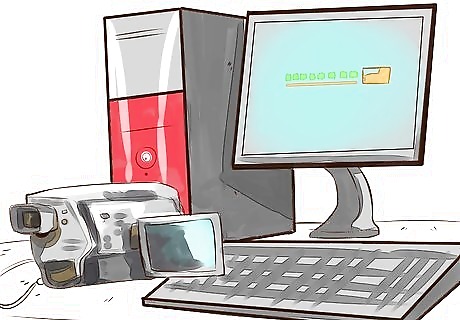 Upload the uncut footage and save it. Use the Firewire port to hook up your camera to the computer and upload the footage. The specific process will depending upon the type of editing software and the camera that you use, but you'll always need to upload the footage to the computer first and save a copy. Never start editing away footage until you save the footage. If you make a mistake, or decide that you want to use another take of a certain trick, you want to make sure that you've got the original to work form. Alternatively, you might leave the raw footage on the tape until you've edited it thoroughly, before clearing it off the tape itself. This will help you to save hard drive space.
