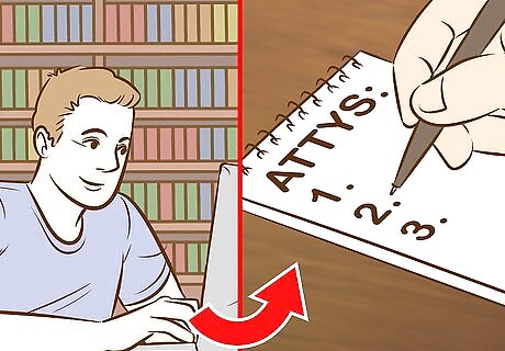 Determine what type of attorney you need. It is always preferable to locate an attorney who has specialized expertise in the practice area that your case involves (e.g., malpractice law, bankruptcy law, etc.). It’s also a good idea to find attorney familiar with the courts and laws of the area where you live. This will enable your attorney to best represent your interests. Some examples of practice areas include: Bankruptcy law. This will be helpful if you are struggling with your finances. Criminal law. An attorney who specializes in criminal law is important if your case involves a crime or potentially illegal activity. Disability specialist. Disability specialists can handle Social Security and/or veteran’s disability claims. Trusts and estates. This type of lawyer deals with issues such as estate planning, qualifying for Medicaid, probating an estate, and obtaining guardianship of an elderly parent or grandparent. Family Law. Family law attorneys handle matters such as separation, divorce, pre-nuptial agreements, adoption, guardianship, child custody and support. Personal injury law. Personal injury attorneys handle cases involving medical malpractice, dog bites, car accidents and any injury to a person that may be the fault of another. Employment law. Employment attorneys can help your business set up employment policies or handle cases where either an employee sues a business for wrongful termination or a where a business is sued. Small business or corporate law. If you are looking to establish a business, a small business attorney or corporate attorney is your best choice.
