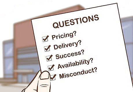 Write out questions about the lawyer's practice. You can generally find out the basic information about the attorney online, such as how long s/he has been practicing, where s/he went to law school, etc. For your in-person questions, ask about matters that are relevant to your specific case. The attorney should not have any problem answering any questions you may have, and should not sound hesitant or unsure. Areas to ask about include questions about the following: Pricing. You should ask whether the attorney offers hourly pricing or flat fees? Flat fee pricing is very popular for many areas of practice, particularly things like family law. Delivery time for legal work. You should ask how quickly you can expect for the attorney to complete your legal project. Your attorney will likely not be able to give you an exact number, but s/he should be able to tell you how long previous, similar cases have taken and when you can likely expect a resolution. Success rate. You will probably want to ask what the attorney’s track record is with cases like yours. Attorneys cannot guarantee an outcome (they are ethically forbidden to do so) but you should have an idea of what results you can reasonably expect. You can also ask for references from prior clients. Be aware that the attorney must obtain permission from prior clients before s/he can give you their information, so you may not get references immediately. Availability. You should ask how quickly the attorney can start. You should also ask who your primary contact throughout the case will be. Will you hear mostly from an assistant or junior colleague? You should know who to contact with questions about your case. Misconduct. If the attorney has misconduct or reprimands on his or her record – which you can find out at your state’s bar association website – ask about them. In some cases, the infraction may be minor, such as failure to pay bar fees on time. You must decide whether the infraction is significant enough to disturb you.