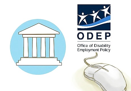 Search government programs for employment. The Office of Disability Employment Policy (ODEP) does not award grants to individuals with disabilities. But there are several helpful government programs and resources for disabled individuals seeking employment. USAJOBS.com is a great resource for individuals with disabilities looking for employment through the government. The US government also runs a program called Selective Placement that give federal agencies incentives to hire individuals with disabilities. Qualified applicants can be placed in federal agency jobs without going through the competitive placement process. The Workforce Recruitment Program, co-sponsored by the Department of Labor's Office of Disability Employment Policy and the Department of Defense, connects postsecondary students and recent graduates with disabilities with positions in the federal government. The Pathways Program provides employment opportunities and internships for students and recent graduates, including those with disabilities, in the federal government.