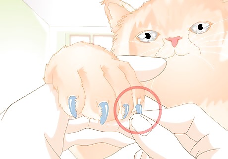 Buy plastic nail caps. Your vet can help you glue these safe, effective caps onto your cat's nails. They last for about six weeks before needing to be replaced, and are available from vets, or some pet shops. Also, a quick internet search will likely yield a great deal of online shops to buy them from. If you feel comfortable applying the caps yourself, you can, or simply see your vet. Make sure to follow the instructions on the package. You don't want to make your cat uncomfortable by putting the caps on incorrectly.