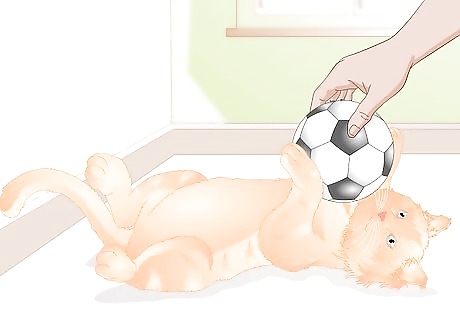 Provide the cat with toys. Climbing posts, cat grass, and toys are all great ways to keep your cat entertained and busy. If your cat stays engaged, it's less likely that your cat will entertain itself with scratching up furniture. Go to your local pet supply store and ask an associate for help picking out some new items. Many cats like balls. Try ones that make noises and ones that light up. Cat toys are pretty inexpensive, so you can experiment to find ones that your cat enjoys. Try some toys, such as stuffed mice, that have cat nip in them.