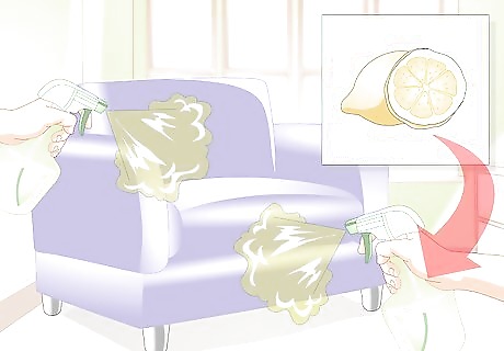 Use unpleasant scents. Cats tend to dislike the smell of citrus. Try using a citrus essential oil to keep them off the furniture. Mix a few drops of oil in a spray bottle of water. Shake it up and spray lightly on the areas you want to keep your cat clear of. You can also try wetting a few cotton balls with the mixture and placing them around objects you want your cat to leave alone. The scent of menthol works, as well. Cats also tend to dislike the scents of vinegar, lavender, and coffee grounds.