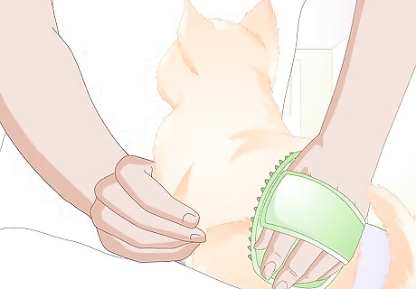 Give your cat attention. Sure, cats are pretty independent. But your cat also wants you to provide it with affection and stimulation. You can pet your cat, groom it, and play with it. Sometimes cats will scratch out of boredom. The more you interact, the less likely your cat is to be bored. If your cat looks like it wants to enjoy a good clawing session, direct it gently to one of your permitted clawing zones and items.