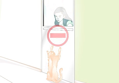 Block access to some rooms. Perhaps consider keeping the lounge room sacrosanct and cat-free. If there are certain rooms your cat seems to scratch up the most, just keep your cat out of these areas. Keep doors closed, and keep the cat contained to certain areas. Try giving the cat its own special spot, or perch. Maybe there is a certain window the cat likes to look out—provide the cat with a perch or pillow to sit on. If the cat feels happy in one spot in the house, it might be less likely to get bored and explore for new things to destroy.