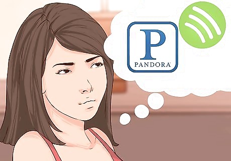 Use online music services. Rather than downloading pirated music, use an online streaming services such as Pandora or Spotify. These sites allow you to listen to brand new albums without purchasing the album. If you pay for premium service, you can listen without commercial interruptions. You can listen to brand new music for free if you don't mind hearing occasional advertisements.