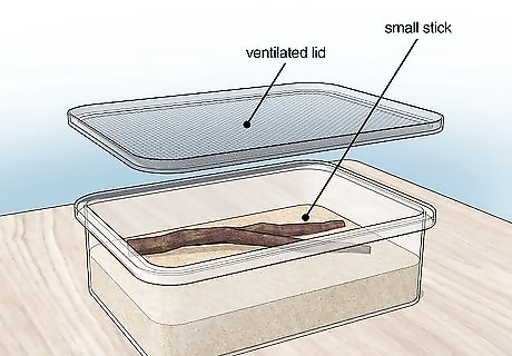 Prepare the habitat for your antlion’s cocoon stage. If you want to keep an adult antlion, make sure you have covered the habitat so it won’t escape. Also, put a small stick in the sand for it to perch on so its wings will develop properly. Recognize when your antlion stops eating. This is a clear sign that they are beginning their pupa stage. Antlions spin a cocoon under the sand in order to become an adult. This stage will last approximately 3 weeks. When antlions emerge as an adult, they will have wings. Make sure you have prepared their environment so they cannot fly away and have somewhere to perch. Cover the habitat with a ventilated lid or net so the adult antlion won’t escape. They will fly out of the habitat if you’re not careful and they can hurt themselves outside of their habitat. Free your antlion when it becomes an adult so it can procreate. Adult antlions will grow too big for your habitat. This will enable it to reproduce and live out its relatively short life.