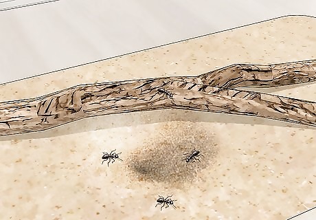 Check sandy areas such as playgrounds or beaches. Antlions don’t like people, so avoid well-trodden areas. Instead, try to find relatively secluded areas to find antlions. Find secluded sandy areas. Antlions will not be found in the middle of a busy beach or playground. Look for cone-shaped pits. They should look like hollow cone with a hole in the middle like a funnel. This is a clear sign of nearby antlions. Antlions can live in many other kinds of substrates. Check out other areas with a lot of dirt if you don't have any sandy areas nearby.