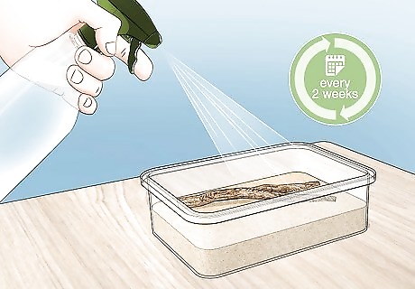Don’t worry about supplying the antlion with water. Antlions get most of the water they need from their food. If you are worried about your antlion getting enough water, you can mist their sand every two weeks. Make sure not to flood the antlion habitat if you mist their sand. Antlions can drown, especially in their pit. Check on your antlion to make sure it’s getting enough food. If not, it may also not be getting enough water.