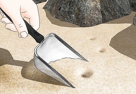 Scoop out the pits with a sand sifter. You may have to try multiple times to make sure you find a living antlion larva. Use the scoop near the antlion pit. They may not be in the pit at the time, so you may need to try around the pit as well. Carefully sift out the sand. Make sure you don't hurt the antlion by being too rough with the sifter. Continue using the sifter in the area until you find the antlion. Stay attentive, since the antlion is the same color as its sandy environment.