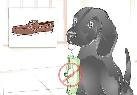 Do not purchase toys that look like household items. Avoid any toys that are shaped like kid's toys, shoes, and other household items. Your dog will come to associate the shape of their toy with the items in your household and see them as other toys. This encourages bad behaviors, like chewing on shoes. Your dog, especially if they are young, may not be able to differentiate their toy with your child's toys so it's easier to just avoid any similar shapes.