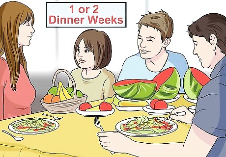Start small. If family dinners are not already a regular practice for you, it may be easier to start with one or two dinners a week. Once this has become an established practice, work your way up to three or four. Soon, it will become an ingrained part of your schedule, and you can have family dinners everyday.