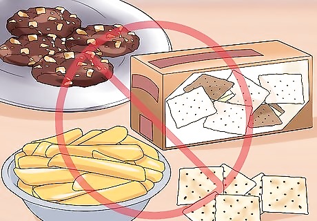Avoid unhealthy snacks before dinner. Once you have an idea of what time you will be eating dinner, you can eliminate snacks from the schedule. Stop giving processed snacks like cookies, chips, or crackers about an hour or two before dinner. If your children are hungry, give them a small healthy snack like apple slices or carrot sticks to tide them over until dinner.