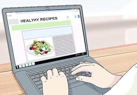 Prep meals at the beginning of the week. If you have a day at the beginning of the week free, you can make all of the meals for that week in advance. With a little bit more time and planning, you may even be able to cook an entire month worth of meals in one day. All you will need to do is heat the food. This is a great if you have a busy work schedule or not much time to cook. Some healthy meals to make in advance include: Chicken Noodle Soup Baked Ziti Turkey Chili Indian Curry