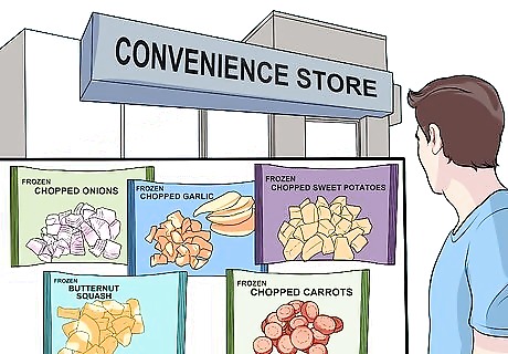 Choose convenient foods. Some foods are fast but still healthy. Try to pick healthy foods that are easy and quick to make. This is especially helpful with side dishes, such as vegetables or starches. Frozen vegetables are just as healthy as fresh vegetables. They usually only take a few minutes in the microwave to cook. You may be able to find pre-chopped vegetables at your grocery. You can usually find chopped onions, garlic, sweet potatoes, butternut squash, or carrots. If you want warm rolls at dinner, you can buy premade frozen dinner rolls that will heat up in the oven. You can also buy premade dough, and bake it yourself.
