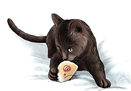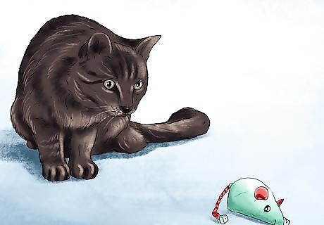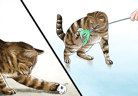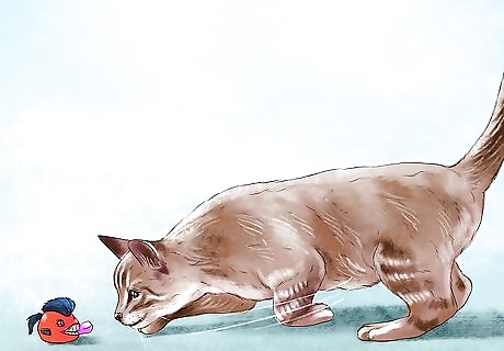 Let your cat win. This will provide your cat with a reward and will keep them engaged in the game. If the cat is never able to catch the “prey” they may become frustrated and bored. It is always a good idea to end a play session after your cat catches the toy.