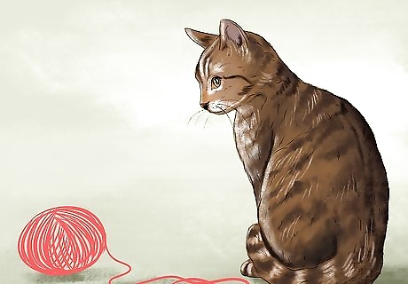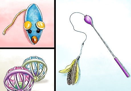 Purchase interactive toys. Interactive toys, such as wand toys, can be used to help determine your cat’s prey drive and play style. For example, you can move the toy along the ground or through the air mimicking different types of prey. Other types of interactive toys include balls and stuffed animals that can be thrown and then chased by your cat. Rotate toys often so your cat doesn't get bored. At the end of the day, put away the day's toys and produce different ones the following day to keep their interest.