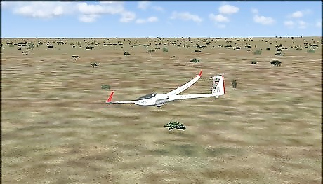Land the glider. When you are ready to land, press G to lower the landing gear, point the nose down, pick a landing spot, open and close the speed brakes as necessary to keep your airspeed as close as possible to 50 to 55 knots, and land the glider.