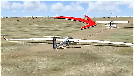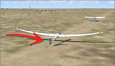 Keep the tow plane slightly above or below you and slightly to the right at all time. This will keep you out of the tow plane's wake turbulence and will make it easier for the tow plane to fly straight by overcoming the propeller's p-factor force. Control vertical position with the stick, and the position behind the tow plane with the rudder.