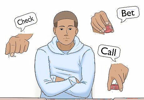 Pay attention at all times so you know when it’s your turn. As the action of the game goes around the table in a clockwise direction, pay attention to the bets, calls, and checks. Sometimes, other players will not vocalize their actions, so you need to pay attention to know what’s going on. It’s impolite to keep other players waiting and it makes it look like you don’t know what you’re doing. For example, a player may “check,” which means they will skip their turn and come back to it, by tapping the table.