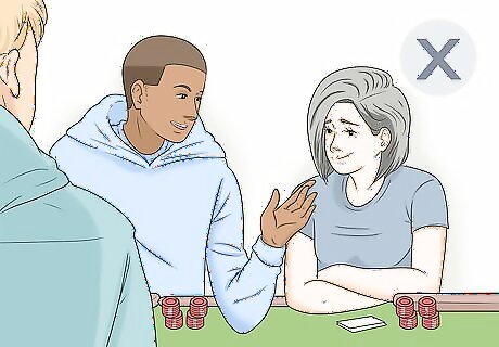 Refrain from trying to influence the actions of other players. Don’t criticize another player’s decisions or tell them what you would have done differently in a round. If you’re playing poker at a casino, that means people’s real money is being won and lost and tempers can flare if you try to tell a player what they should do with their money. Even if you’re not playing at a casino, it’s rude to try to influence another player’s actions.