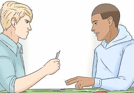Avoid talking during other player’s turns. As the action moves from player to player around the table, be courteous and refrain from talking while another player considers their options and makes their play. Talking can also reveal a weakness that another player could exploit. Poker is meant to be fun, too. You don’t have to stay quiet the whole time, but be polite and allow another player to make their decisions without distractions.