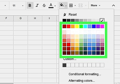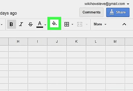 Click the Fill Color icon to change the cell color. It’s the icon of a tilted paint can near the top-right corner of Sheets. A list of colors will appear.