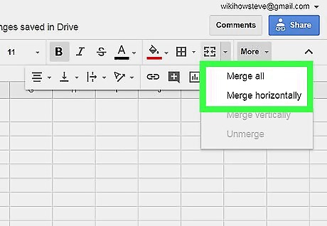 Click a merging option. Select Merge All if your selection contains columns and rows you want to combine into one cell. Otherwise, select Merge horizontally or Merge vertically to combine cells in that direction.
