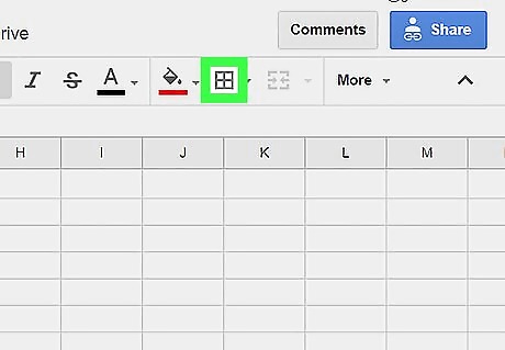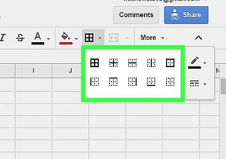 Click the Borders button to change the lines around the cell. It’s the square broken into 4 smaller squares to the right of the Fill Color icon. A list of cell border options will appear.