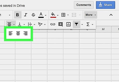 Click an alignment option. The text within the selected cell(s) now follow that alignment.