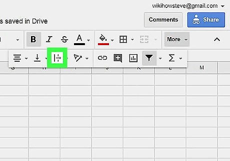 Click the Text Wrap icon. It looks like an arrow pointing to the right, crossing over a vertical line. This option will wrap longer cell values into a format that fits better in the selected cell(s).