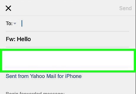 Add a message. Tap the blank pace just below the "Fw:" field, then type in a message if you want to add one. You don't have to add a message to forward the email.