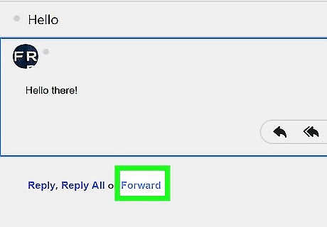 Click Forward. This link is below the email. Doing so will open a response field. You can also click the right-facing arrow above this link to forward the email.