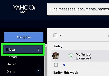 Click Mail. It's the purple letter icon in the top-right corner of the page. Doing so will open your inbox if you're signed into Yahoo. If you aren't signed into Yahoo, enter your email address and password when prompted before continuing.