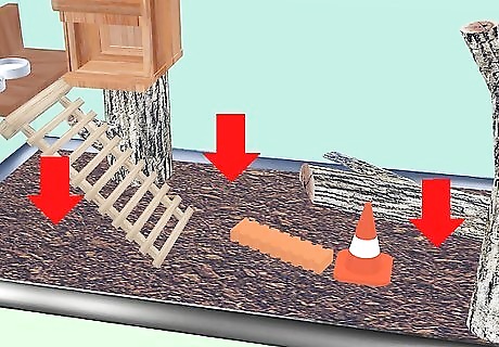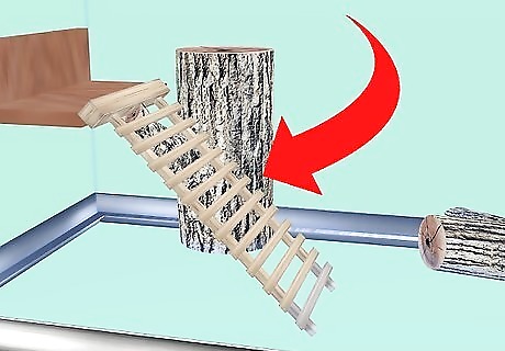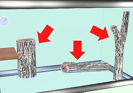 Add branches. Reptile logs - these can be placed sideways in your tank or attached vertically. Some may have fake plants attached. Parrot branches - these may have fastenings for barred cages that you can either remove or bury safely in substrate. Natural - you can get fallen wood from your local forest. This must be fallen from the tree and completely dry. It must also fit in your oven, because you will need to bake at around 200 degrees for about 20 minutes to kill off any bacteria or fungi. Some keepers recommend you also strip the bark.