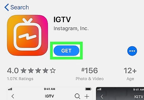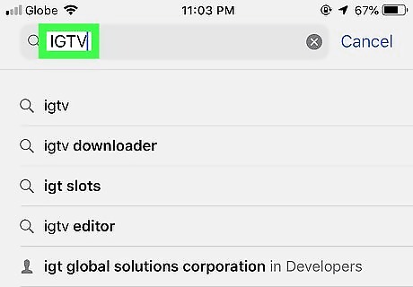 Search "IGTV." Tap the search bar at the top of your screen if you're using the Google Play Store. You'll see a tab for the search page at the bottom of your screen if you're using the App Store.