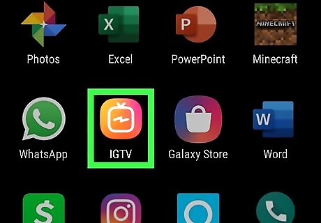 Open IGTV. This app icon looks like an outline of a TV with a lightning bolt inside that you can find on your Home screens, in the app drawer, or by searching. You need an Instagram account to use IGTV. You can either create an Instagram account or use one that you have already.