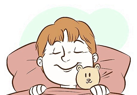 Design a special sleep pillow for your child. Your child may look forward to sleep if you together design a special sleep pillow (or blanket): decorate it with happy, safe thoughts, pictures, or poems. You can then place a magical “spell” on the pillow that will guarantee your child will have good, fun dreams and restful sleep.
