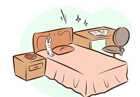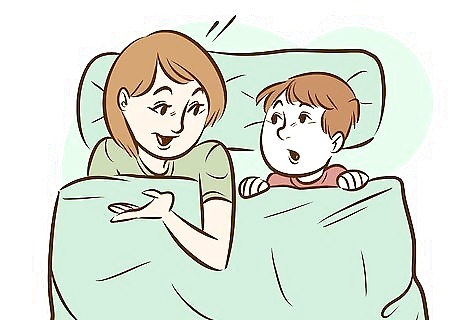 Prepare your child's room for sleep. As part of your nightly routine, you may want to consider “fixing” your child's room for sleep. For example, you can help arrange all of his/her stuffed animals around the bed, or sprinkle “good dream dust” around the room. Use your imaginations, and try to find a way to make your child's room and bed feel like a warm, inviting, magical place for sleep.