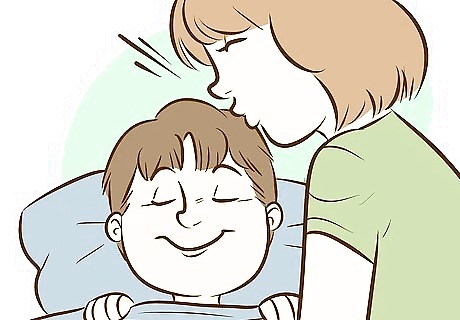 Keep your return visits brief. If your child doesn't fall back to sleep, you needn't feel as though you must ignore his/her calls for you. Return to his/her room, tuck him/her back in while reminding him that it's time for sleep, give him/her a quick hug and kiss, and then leave.