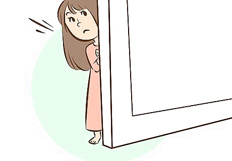 Gently guide your child back to bed if he/she comes out of his room. If your child makes a sudden appearance after having been put to bed, gently but firmly guide him/her back to bed, and repeat the tucking in and saying good night routine. Stay firm (but loving) and consistent. You may have to repeat this several times, but your child will soon learn that he/she can't buy extra awake time by sneaking out of bed.