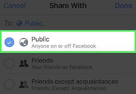 Post publicly. Public posts reach people outside of your Friends list, and you can use tags (e.g., "#globalwarming ") to designate the topic of your post so that other users who are interested in your tagged topic can view your post simply by typing the tag into the Facebook search bar. You can change who can see your post by clicking the Friends bar beneath your post's text field (desktop site) or by tapping the Friends bar beneath your name in the "Update Status" box (mobile app) and then selecting Public.