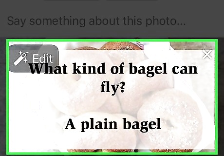 Post photos. Especially for users scrolling through their News Feeds on mobile platforms, visual media (e.g., photos and videos) are more desirable than text-only posts. These photos should be original, and you should include commentary on them if at all possible. For example, you might post a photo from a hike with the caption "Had a great time at [location] last Saturday!"