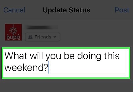 Ask your friends questions. This is a great way to ensure that people will comment on your post, at the very least, and posts with large numbers of comments receive higher visibility in other friends' News Feeds. Don't ask personal questions, since you're liable to receive less engagement for an embarrassing topic.