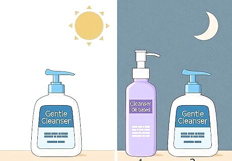 Cleanse your skin in the morning and at night. According to skincare professional Diana Yerkes, “the best way to minimize the appearance of enlarged pores is to really concentrate on cleansing your skin.” Simply use a gentle cleanser in the morning. Then, Yerkes recommends double-cleansing in the evening. Massage an oil-based cleanser into your skin and then follow it up with your gentle cleanser. Yerkes especially recommends using an enzyme-based cleanser to help with large pores and keep oily skin under control.