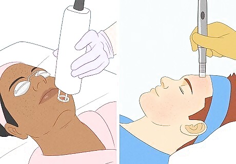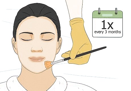 Get facial peels. Facial peels help to exfoliate the skin and unclog pores, which can help improve your skin texture and reduce the appearance of your pores. Jannes recommends getting a facial once every 3 months or so, with once per month being optimal. She says glycolic acid peels and salicylic acid peels are especially helpful for large pores. Simply visit your dermatologist or a med spa/skincare clinic near you to get a facial peel.