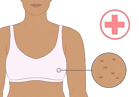 Visit your doctor immediately if you notice changes to your breasts. See your doctor immediately if your breast(s) has pitted skin, is growing in size, has an inverted nipple, is discolored, or is painful, or you notice swollen lymph nodes near your armpit or collarbone. These can all be symptoms of inflammatory breast cancer.