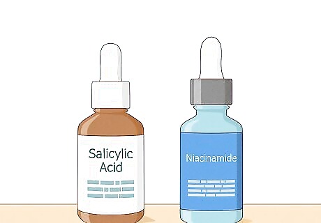 Use a pore-minimizing product, like salicylic acid or niacinamide. There are plenty of other products that you can add to your skincare routine to help minimize your pores and improve your skin’s texture. When adding new products to your routine, go slow and keep your skin moisturized. Some great options to try include: Salicylic acid: It unclogs pores and exfoliates the skin so it's softer and smoother. It can also help treat acne. Niacinamide: It helps to control oil production, which can keep pores unclogged. It also helps keep your skin moisturized and protects it from damage. Glycolic acid: It’s a type of alpha-hydroxy acid (AHA) that helps smooth the skin and make it appear more glowy. It also helps to unblock the pores. Vitamin C: It can protect your skin from damage, helping it look smoother and more evenly toned. It can also help reduce the signs of aging. Note: Some of these products can be used together, though generally, it’s recommended to use one at night and one in the morning. We have in-depth guides about adding salicylic acid, niacinamide, glycolic acid, and vitamin C to your routine.