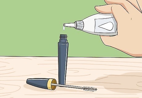 Add saline solution or eyedrops to your mascara when it starts to dry out. Add 4-5 drops of the solution. Insert your wand and stir; this can be repeated 2-3 times until your mascara is gone.